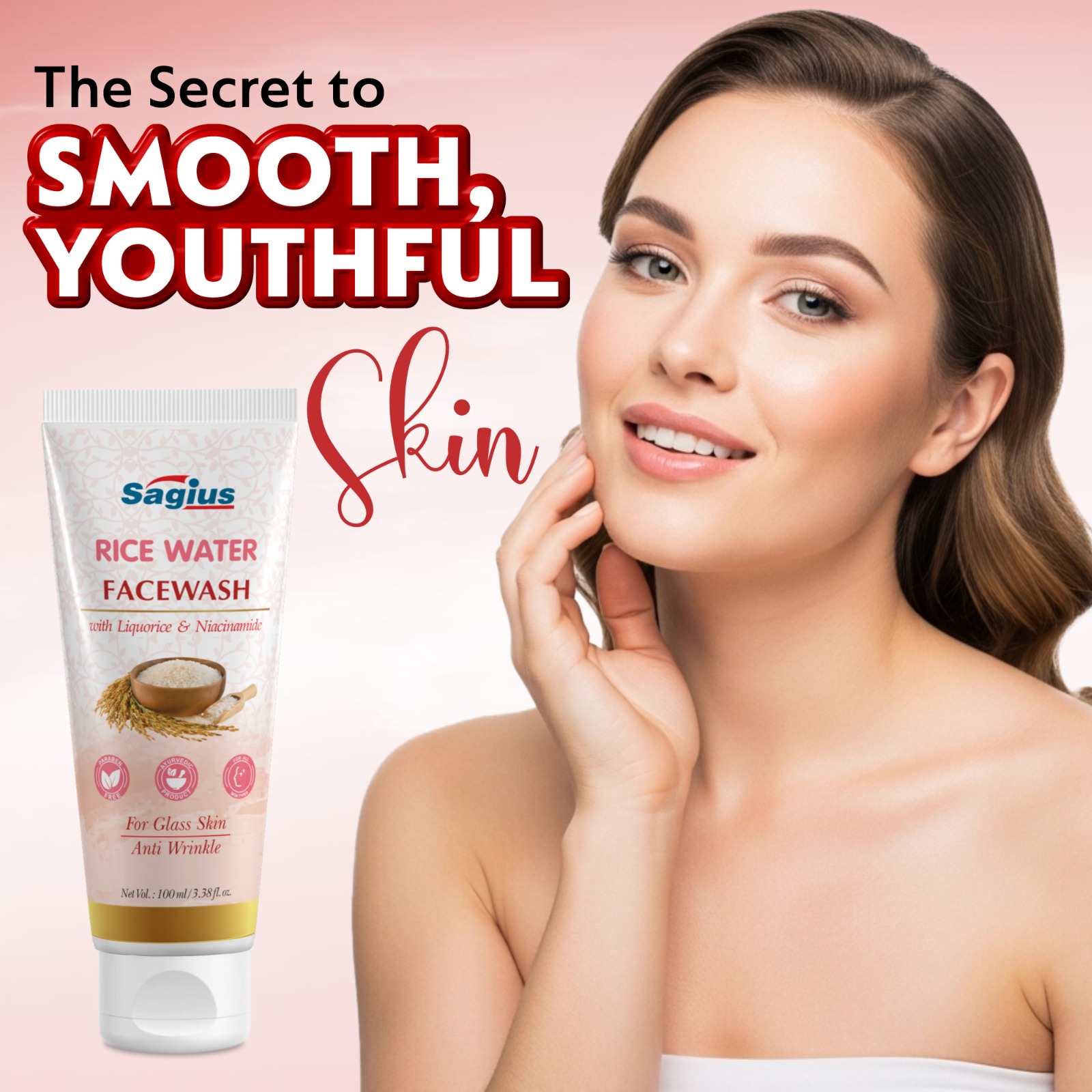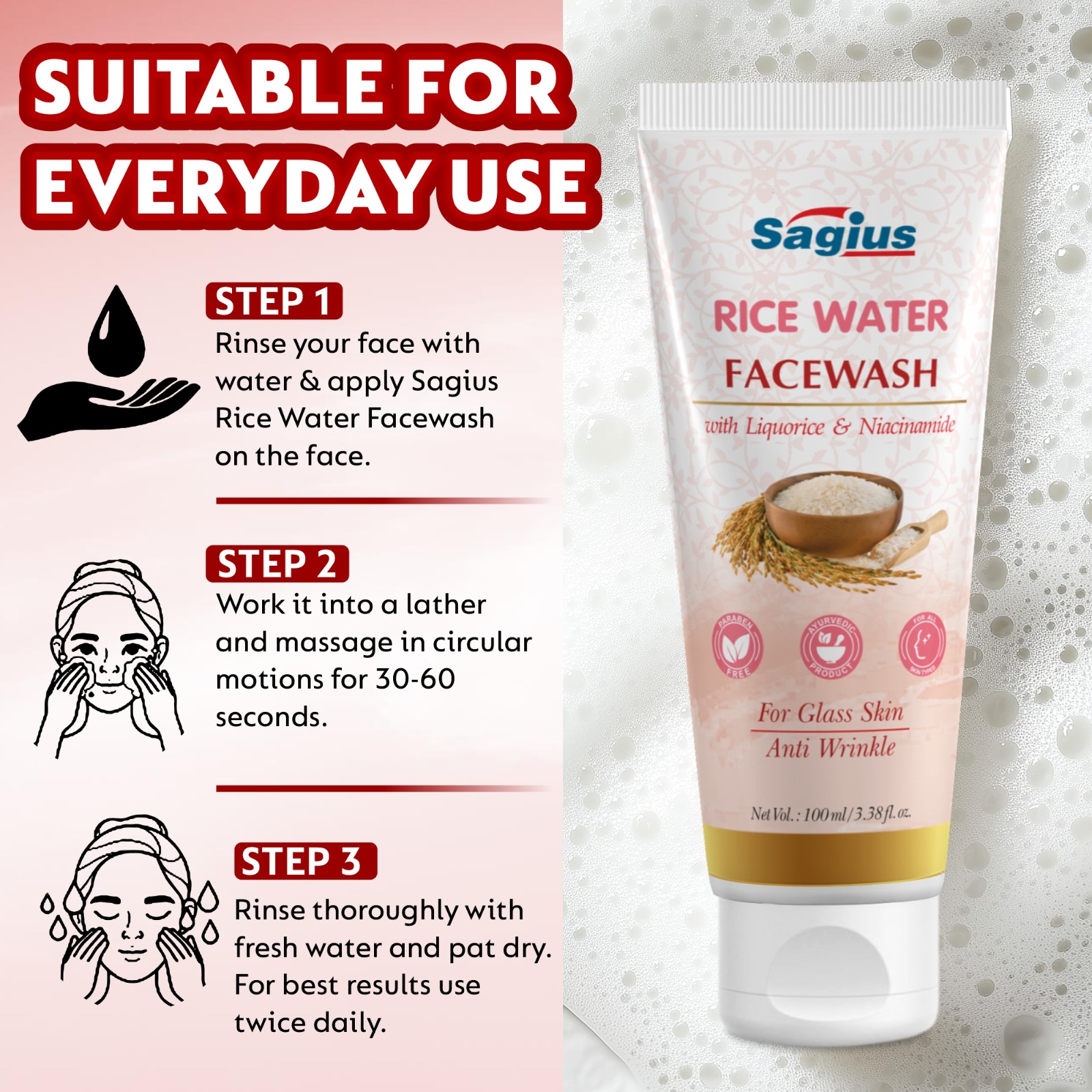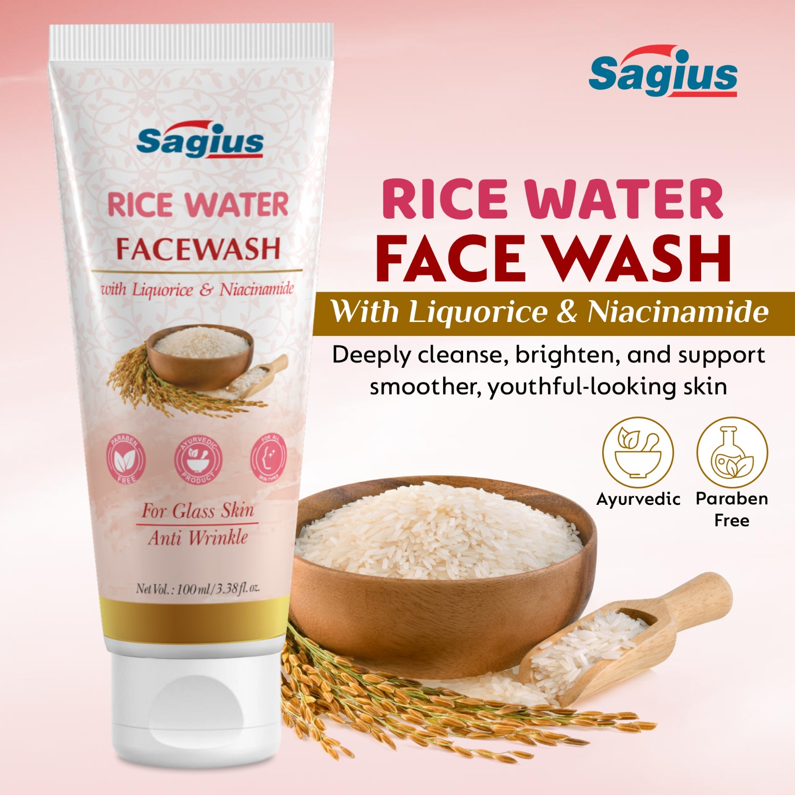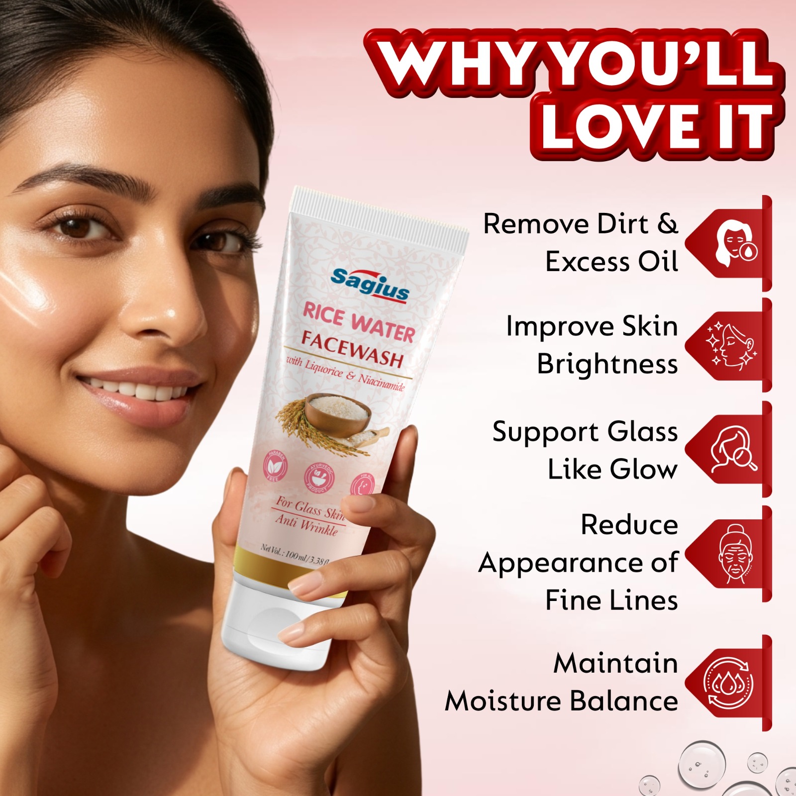 Rice Water Facewash for Glass Skin I 100ml I Anti Wrinkle I With Rice & Niacinamide I Paraben & Sulpahte Free